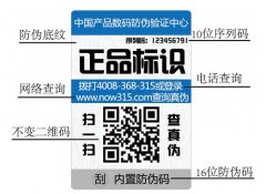 上海尚源防偽采用數(shù)碼防偽原理,即電碼防偽。為每一件入網(wǎng)的產(chǎn)品設(shè)置一個(gè)獨(dú)一的編...
